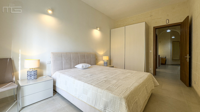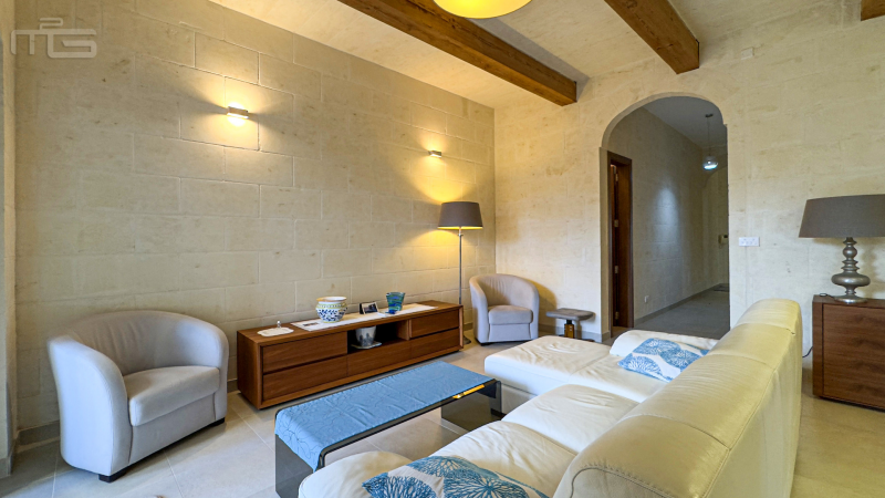A covered terrace leads off the living area, offering the perfect place to enjoy the serene outlook and Gozo’s gentle climate.