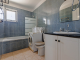The bathroom has a bathtub, over bath shower with screen, WC and sink with handy vanity unit, ideal for extra towels and toiletries. The bathroom also houses the washing machine and includes a window above the bath, offering plenty of natural light.