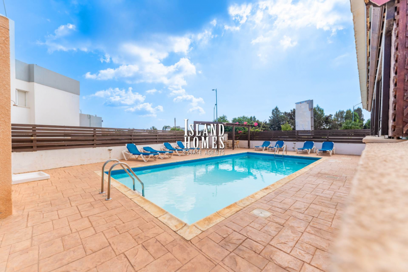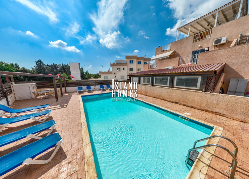 2 bedroom, 2 bathroom, second floor apartment with TITLE DEEDS with restrictions, 39m2 veranda and communal SWIMMING POOL on a popular complex located just 1.5km from the beach in Kapparis - ANO108