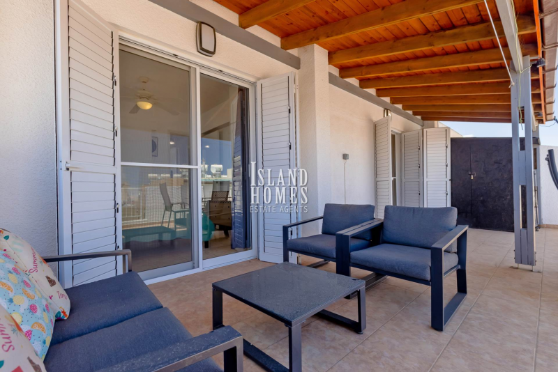 This delightful apartment is offered for sale fully furnished with shutters on both patio doors and includes allocated covered parking, a wooden storage shed, with the living room AC and solar panels having been recently replaced.