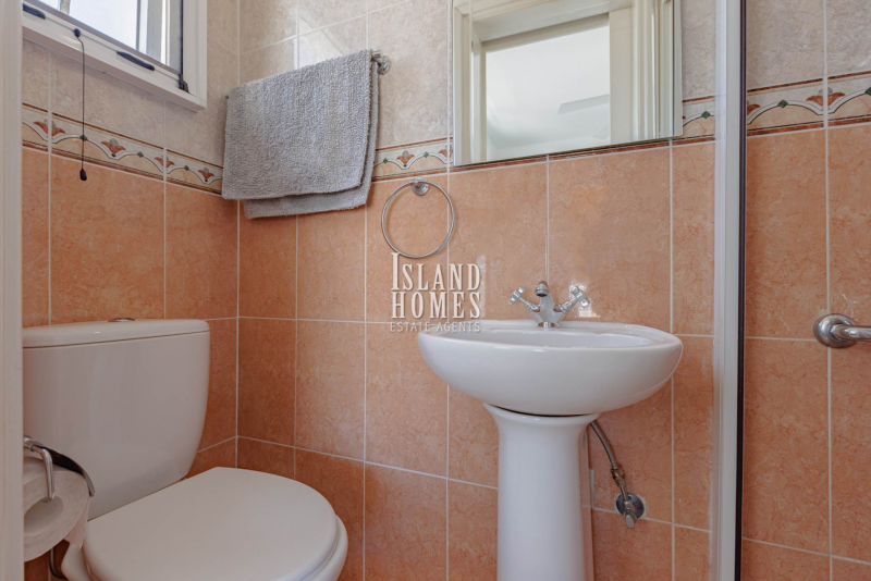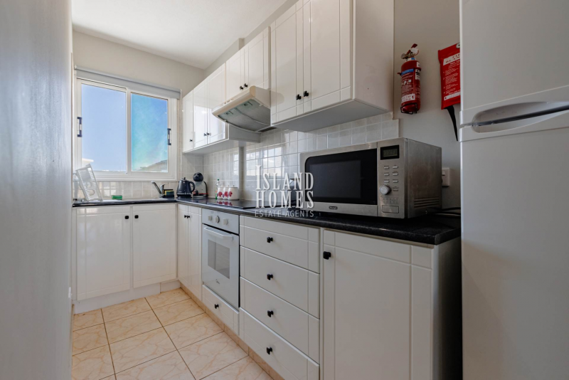 This is a fabulous opportunity to own a beautifully presented apartment close to the coastal area of Kapparis. Situated on the second floor of a popular complex, the apartment entrance leads into a stylish and cosy living, dining and kitchen area. The kitchen is bright with white units and wall tiles and a contrasting black worktop. With a galley style layout and plentiful natural light from the window above the sink this kitchen offers a very user friendly space with everything to hand.