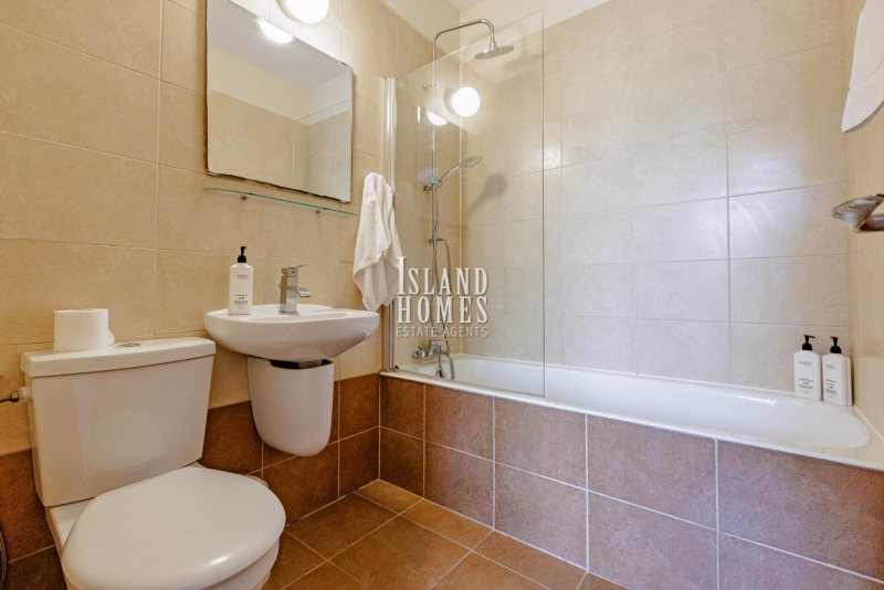The double bedroom is spacious and bright and includes built in wardrobes as well as patio door access to the garden. The bathroom is ensuite and includes a bathtub, over bath shower and screen, WC and sink.