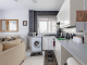 Located on the ground floor, this charming apartment welcomes you with a practical entrance area, offering space for coats, shoes, and everyday essentials. The property opens into a bright open-plan kitchen and living area, featuring a stylish breakfast bar and modern tiled finishes that enhance the contemporary feel.