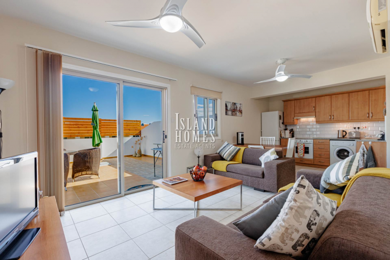 2 bedroom, 1 bathroom, PENTHOUSE apartment with a staggering 121m2 veranda with SEA VIEWS in a convenient location of Kapparis - ARC119