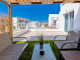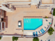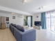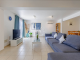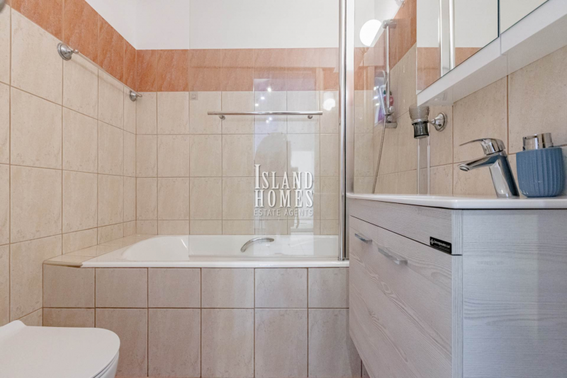 The entrance of this spacious apartment leads into a large, open plan living, dining and kitchen area. The bright kitchen has plentiful worktop and storage space and includes additional seating at the breakfast bar. With patio door access from the living area, this first floor, apartment includes some views of the sea from the 32m2, partially covered, veranda with plenty of space for lounging in the sun as well as dining al fresco. Both bedrooms are double in size and include fully fitted wardrobes. The bathroom includes a bath with over bath shower, WC and sink.