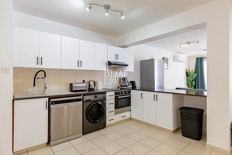 This lovely apartment is offered for sale fully furnished with everything you need to move straight in, including all kitchen appliances and air conditioning. The three living room sofas, all convert to double beds, allowing up to 10 people to stay at the property at any one time. The property also has use of the inviting communal swimming pool of the complex. With a great location walking distance to local shops, bakeries, supermarkets and just 1km from the beaches and amenities of Kapparis. This delightful apartment would make a lovely permanent residence or a fantastic rental opportunity. This property should be seen to be fully appreciated.