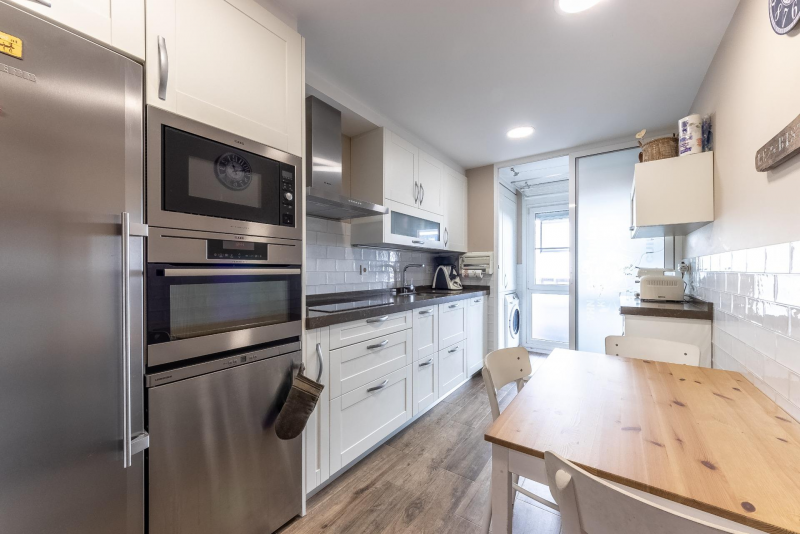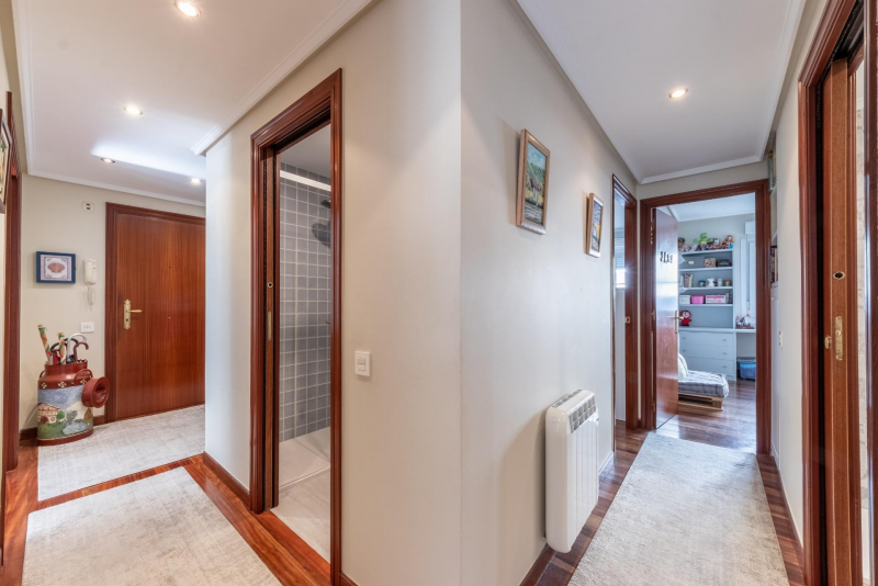 BEST HOUSE REAL ESTATE EXCLUSIVELY OFFERS IN SOPELANA A WONDERFUL SOUTH-WEST FACING PROPERTY WITH OPEN VIEWS TO GREEN AREAS, IN IMPECCABLE CONDITION.~~This is a second-floor flat (no lift) that includes a garage space and a storage room.~Ideally located just a few metres’ walk from the metro station, as well as supermarkets, pharmacies, the town hall, restaurants and cafés.~~This 100 m² home, ready to move into, is distributed as follows: an entrance hall, a spacious living-dining room with bay window, a fully equipped kitchen with top-brand appliances and a utility area.~It offers three large bedrooms with fitted wardrobes and two full bathrooms.~~The rooms and installations have been recently renovated.