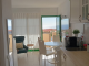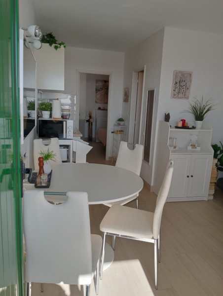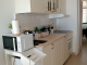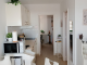The open plan kitchen has a modern and minimalist design, perfectly integrated in the living-dining room. Equipped with new appliances, it offers an ideal space to cook and socialise at the same time.