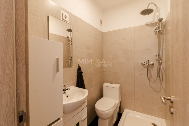 Entrance, livingroom part with acces to the separate modern kitchen which is equipped modern appliances. In the second livingroom part there is a tv room or loungeroom for relaxation. Also on the groundfloor a bathroom with a toilet and a shower. On the first floor, three modernly decorated bedrooms and a spacious luxerious bathroom.