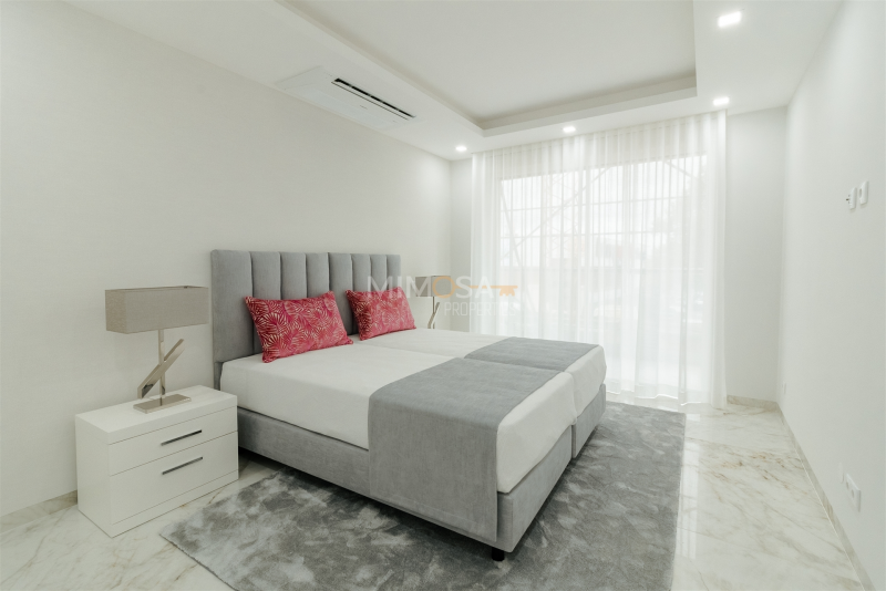 Features Spacious open-plan living room with fully equipped kitchen and direct access to a generous balcony with sea view Two spacious bedrooms, both with built-in wardrobes; one en-suite Premium equipment: air conditioning, underfloor heating, central vacuum system, solar panels, electric shutters, security door, and video intercom Double glazing with thermal-break frames, piped gas, and built-in safe Parking space in garage and storage room Prices from €540,000 to €695,000Surroundings Located in an extremely central area, the condominium offers proximity to shops, services, schools, green areas, and the beautiful beaches of Lagos The environment combines tranquillity with convenience, providing an excellent quality of lifeKey Advantages Heated pool and panoramic rooftop terrace with superb city views Contemporary architecture integrated into a subtle building design with carefully landscaped gardens Construction with high energy-efficiency standards (Class A) Exclusive development with only 24 units, ensuring privacy and long-term valueA unique opportunity to invest in or live in one of the most desirable developments in Lagos. Book your visit today and come discover it!