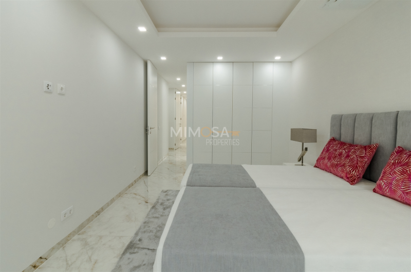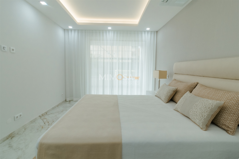 Features Spacious open-plan living room with fully equipped kitchen and direct access to a generous balcony with sea view Three large bedrooms, all with built-in wardrobes; one of them en-suite Premium equipment: air conditioning, underfloor heating, central vacuum system, solar panels, electric shutters, security door and video intercom Double glazing with thermal-break frames, piped gas and built-in safe Parking space in the garage and storage room Prices from €635,000 to €695,000Surroundings Located in an extremely central area, the condominium offers proximity to shops, services, schools, green areas and the beautiful beaches of Lagos The environment combines tranquillity with convenience, providing an excellent quality of lifeKey Advantages Heated pool and panoramic rooftop terrace with superb city views Contemporary architecture integrated into a subtle building design with carefully landscaped gardens Construction of high energy-efficiency standards (Class A) Exclusive development with only 24 units, ensuring privacy and long-term valueA unique opportunity to invest in or live in one of the most desirable developments in Lagos. Book your visit today!