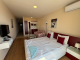 The studio is thoughtfully designed, offering a comfortable living space with clearly defined areas for sleeping, relaxing, and dining. The interior is well-maintained and practical, and air conditioning ensures year-round comfort.