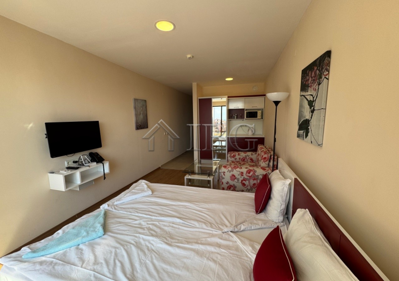 We offer for sale a stylish and functional studio apartment, located in the prestigious Premier Fort complex in Sveti Vlas, directly on the beachfront.