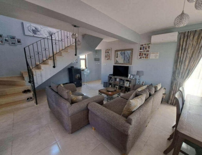 The lounge/diner is open plan and is of a good sized and feels very light and airy with the abundance of windows. There is a pellet stove which makes it very warm and cosy on those short Cypriot winters.