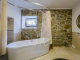 On the lower floor we have a living room, two additional suites, one bedroom, a bathroom, a game room and access to the chapel decorated with some beautiful stained glass windows. All rooms have heating.
