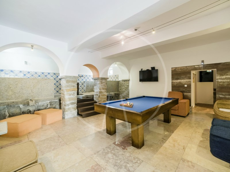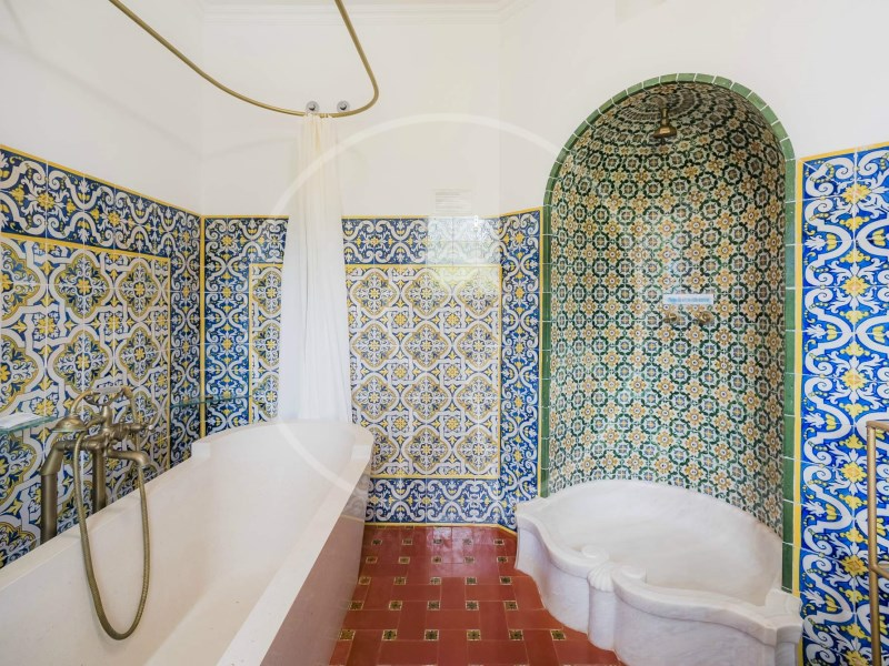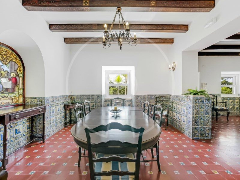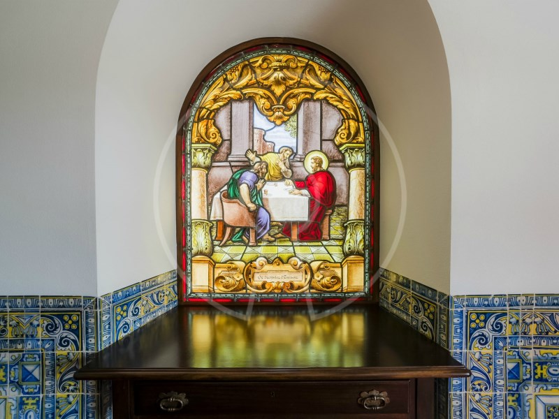 Inside, in a revivalist fashion, we can observe countless details in the main hall, from the floor mosaics, ceiling paintings, coat of arms, to its stained glass and tiles gives this Manor a unique charisma.