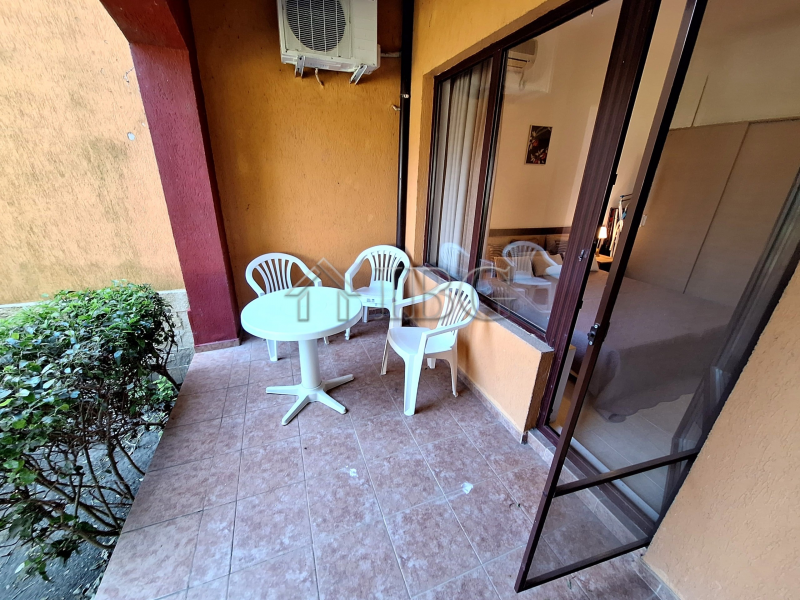 For sale is a spacious 115 sq.m. apartment, located on the ground floor in the prestigious Marina Cape complex in Aheloy.The property offers a bright living room with kitchenette and dining area, 2 bedrooms, a bathroom with toilet and sink. The apartment has own beautiful veranda with Park/Sea views and access to the garden area with enough space for BBQ, sunbeds, splash pool for children, etc.