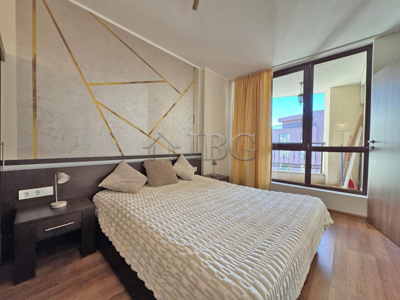 We offer for sale a bright and stylishly furnished one-bedroom apartment in the established residential complex Camelot, located in the Sunny Beach resort, just 500 m from the beach. The apartment has a total area of 60 m² and is situated on the 5th floor of a 6-storey building with Act 16 — ready for occupancy and with separate utility meters for water and electricity.