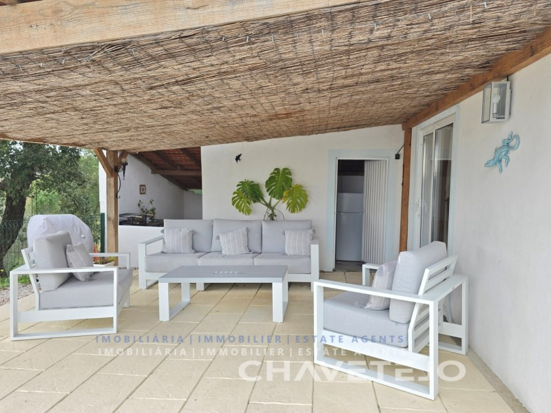 The land itself is varied and rich in natural features, extending to 11,840 m² in total. The grounds include a wonderful mix of olive trees, oak, medronho (strawberry tree), pine, and a variety of fruit trees such as orange, lemon, plum, pear, almond, and cherry, creating both beauty and productivity. The property also includes wooded areas, which could provide a modest income if desired, as well as open fields suitable for self-sufficiency or small-scale agriculture. Maintenance is straightforward, with local contractors available to manage the land a few times per year at a low cost.