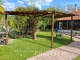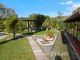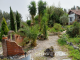 * Idyllic garden with a pavilion, outhouse, and greenhouse