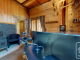 The main house, spanning around 185m², is thoughtfully arranged over two floors. The lower level features a fully equipped kitchen, a welcoming dining room, three generously sized double bedrooms, and a family bathroom. Upstairs, a striking double-height living area with a bar creates a dramatic yet cosy space for entertaining. This level also includes three additional bedrooms, two bathrooms—one ensuite and one family—and a kit room for added storage and practicality.