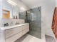 The master suite features a sleek, modern bathroom, ample fitted wardrobes, and direct access to the pool terrace. Three additional bedrooms and a contemporary family shower room provide comfortable accommodation for family or guests.
