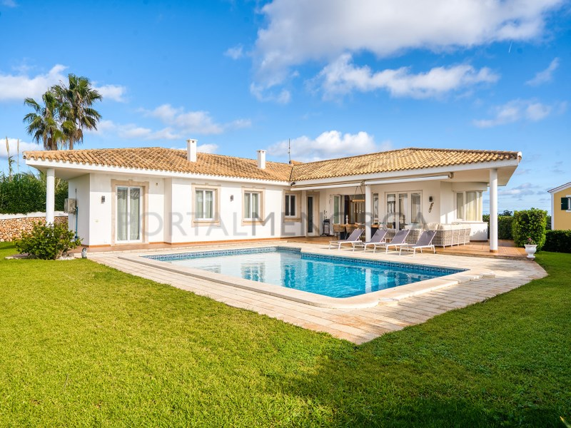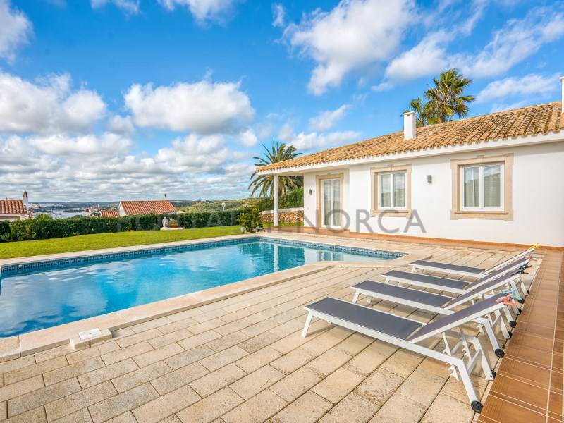 If you are seeking a contemporary, single-level home in one of Menorca's most prestigious locations, this exceptional villa in Cala Llonga is an outstanding opportunity. Perfectly positioned to overlook the Port of Mahón with captivating views of the city, the property offers generous proportions and refined finishes throughout.