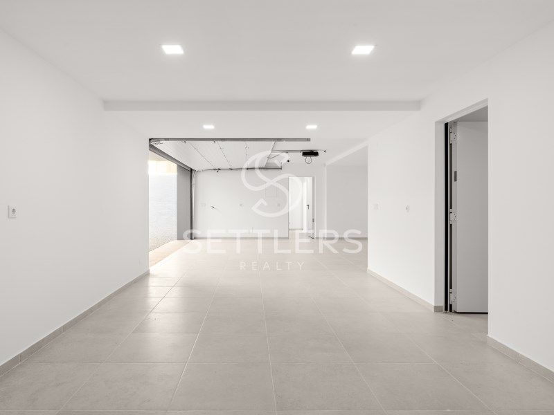 Lower Floor: Garage for four cars (80 m²) and two additional rooms (22 m² each) that can be used as a gym, cinema room, office, playroom, wine cellar, bathroom, laundry area, or technical room.