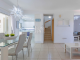 This is a superb opportunity to own a beautifully presented and lovingly extended villa. The entrance of this modern home is directly into the spacious and open plan living area and bright dining area. With two sets of patio doors, allowing plenty of natural light, which open onto the front and back garden. The modern and stylish kitchen is conveniently off set from the living area. Boasting an eye level oven and microwave and finished in white gloss units and matching work tops. The kitchen includes a breakfast bar for additional convenience and has a sleek feel with Grecian blue accents. The ground floor of this gorgeous home also boasts a large double bedroom with direct access to the garden as well as a spacious ensuite shower room, a stunning addition to this stylish home. There is also a convenient guest WC at ground floor level.