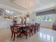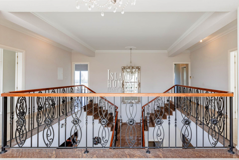 This is a unique opportunity to purchase a spectacular property in an incredible location, on the front line of one of the most inviting bays in the area. This property has an impressive exterior and an even more impressive outlook. The raised entrance porch is adorned with grand pillars, the double door entry leads into a splendid ground floor with a sprawling centrally positioned feature staircase. To the left of the stairs is a spacious kitchen and dining area. The large kitchen overlooks the pool and benefits from an island worktop with additional seating. The kitchen includes an eye level oven and microwave and is finished in a dark wood and striking black worktop and splashback.