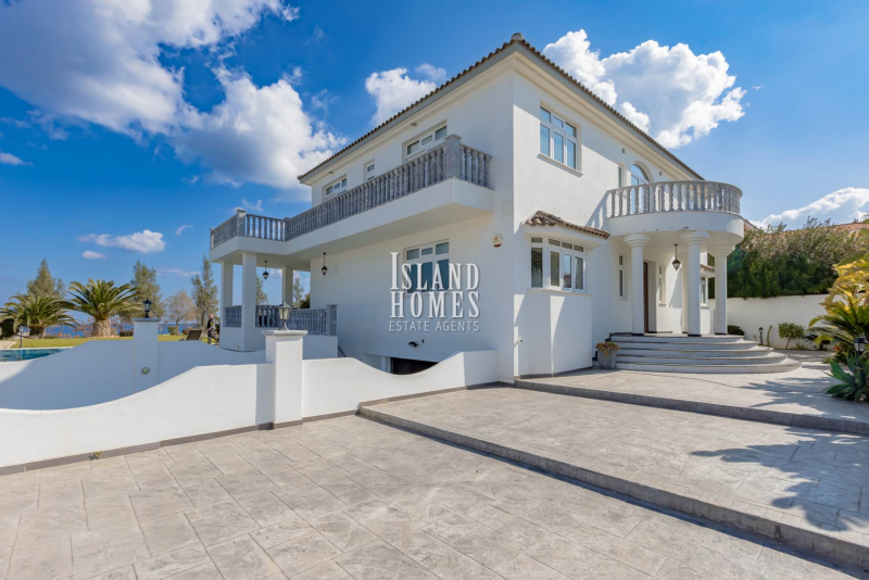 4/5 bedroom, 5 bathroom, 1 WC detached villa with underground parking, swimming pool with jacuzzi, separate staff quarters, TITLE DEEDS for land, superb panoramic SEA VIEWS from a front line position in stunning area of Kapparis - KAP152
