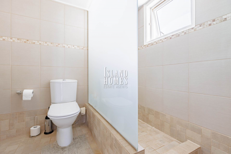 The wrap around garden has so much to offer owing to the size of the plot. The current owners have a fantastic covered area at one side which feels enclosed enough to protect you from the heat of the summer sun and is adjacent to the outdoor kitchen area complete with sink, brick-built BBQ and Cyprus oven. This covered area benefits from a dart board and table tennis equipment for hours of outdoor fun and games. The back of the property has another 30m2 covered area, this multipurpose space, includes fully retractable sides making it ideal for use all year round. The current owners are avid ball sports enthusiasts and have a designated court, which doubles as a sun terrace when not in use. The property benefits from an outdoor shower cubicle and includes ample room for a swimming pool to be added.