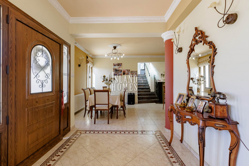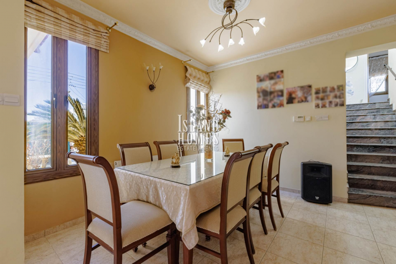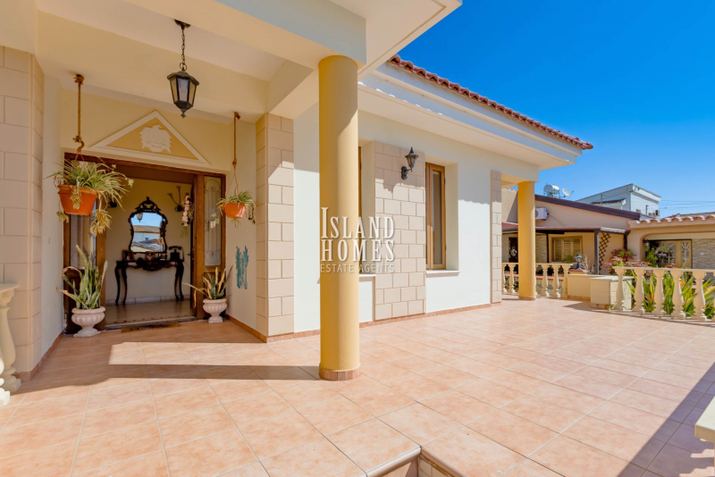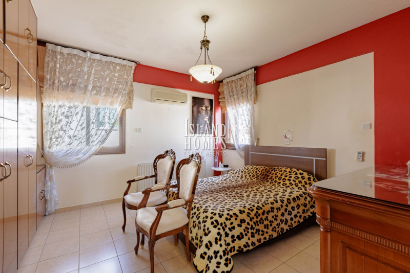 This is an opportunity to purchase a traditional split level property on a large plot with ample parking in the well appointed village of Vrysoulles. The gated entrance to the house leads from a few steps to the raised front veranda and entrance porch. From the front door you find yourself in the, formal, open plan living and dining area. The formal living area has access to the side veranda, a nice space to sit with your morning coffee. With the kitchen adjacent to the formal dining area, there is a large breakfast bar which serves as a small partition wall. This is an ideal space for hosting guests and holding dinner parties. Moving further through the house is the informal dining and living area, also adjacent to the kitchen. Both living areas are accessible to one another from a doorway separating the two. The large kitchen is pure delight with plentiful worktop and cupboard space. From this area there is also access to the rear garden, with a private and covered area, this is a good space for entertaining friends and family.