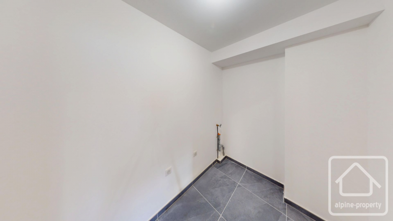 **Outside**, in addition to the balcony and terraces areas, the apartment also has a private garden – outdoor living space perfect for al fresco dining, children’s play, or enjoying the mountain air and lovely views from morning to evening.