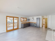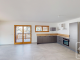 **On the upper floor**, a generous open-plan living room and kitchen (33.9 m²) is ideal for entertaining and relaxing. The fully fitted Cuisinella kitchen has built-in appliances including induction hob, extractor hood, integrated dishwasher, multifunction electric oven, microwave, and combined fridge/freezer. There is also a spacious bedroom with en-suite bathroom on this floor.