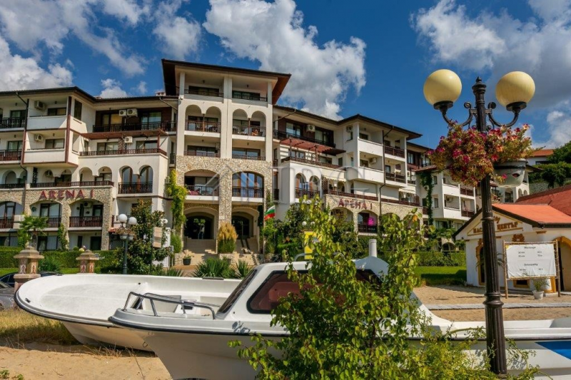 We are pleased to offer for sale a fully furnished Studio apartment in the prestigious Arena 1 complex, located directly on the beachfront, next to the iconic Marina Dinevi yacht port in Sveti Vlas.