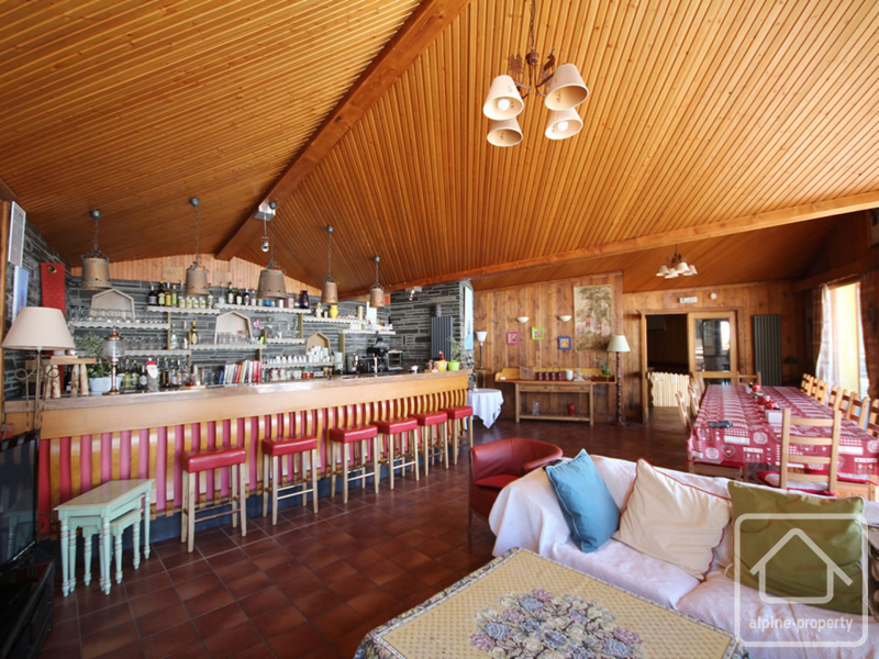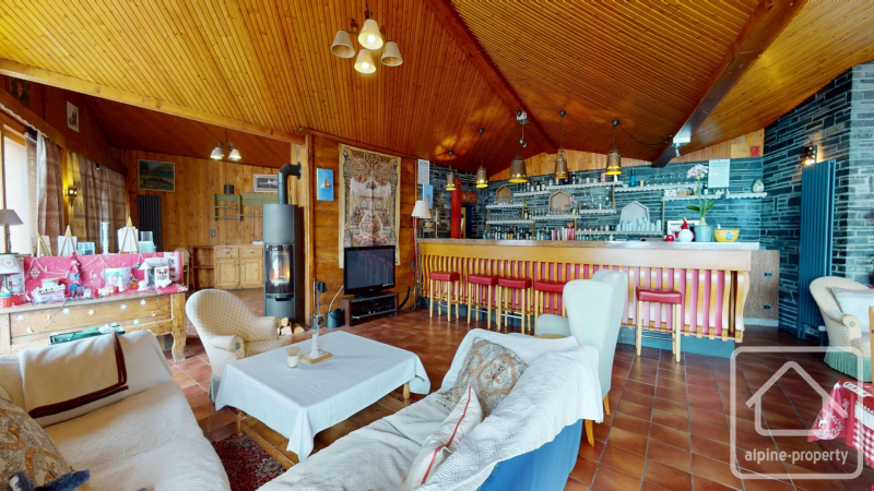 Set on around 2,000 sq m of land, the property’s generous volumes lend themselves to a wide range of possibilities—hospitality, residential development, or a bespoke lifestyle project. Full of character, the building retains several highly attractive features, including a pub with direct access from the slopes, a striking 100 sq m reception room with a long wooden bar, and a convivial outdoor terrace perfectly suited to après-ski gatherings or summer evenings.