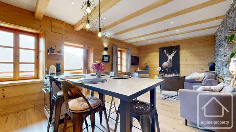 The property is set on nearly 2000m of land benefits from an elevated position set against the majestic backdrop of the Mont Blanc massif and enjoys sweeping panoramic views from its expansive sun terrace, reaching across the dramatic peaks to the alpine meadows and ski slopes of Combloux and Mégève. Rich in character and surrounded by nature, it offers a sense of refuge, where history, beauty, and stillness meet.