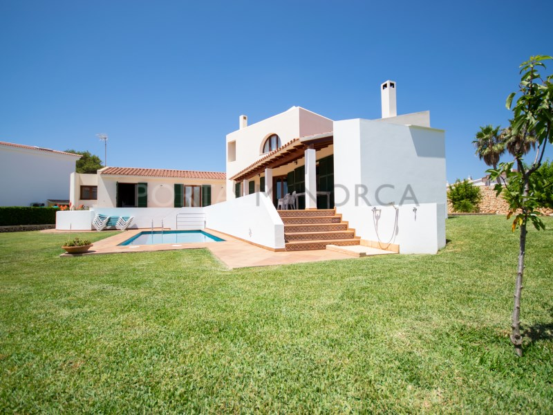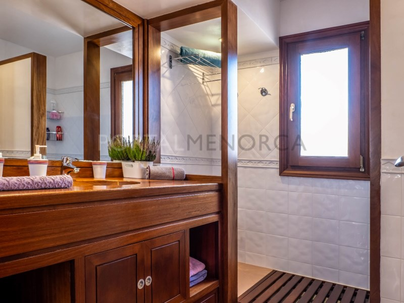 This impeccable villa, with an area of 333 m2 built on a plot of 1000m2, is located in a quiet area of Ciutadella and just a 5 minute walk from one of the most beautiful natural coves in Menorca.