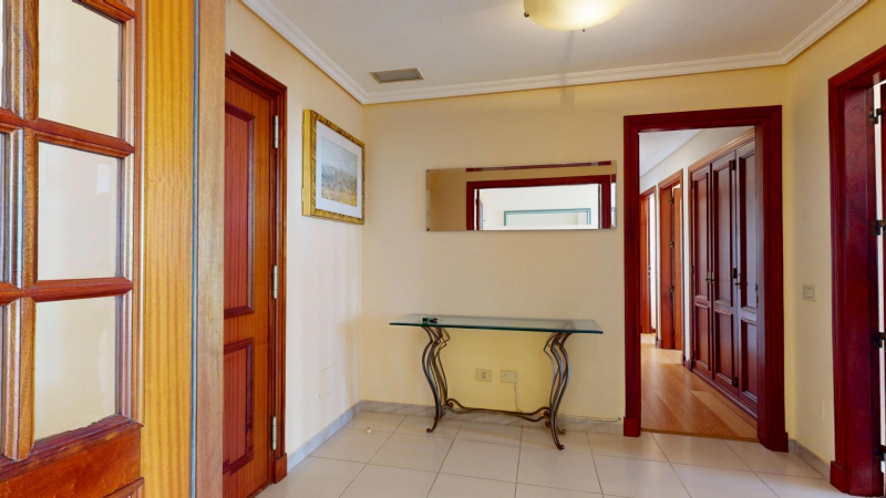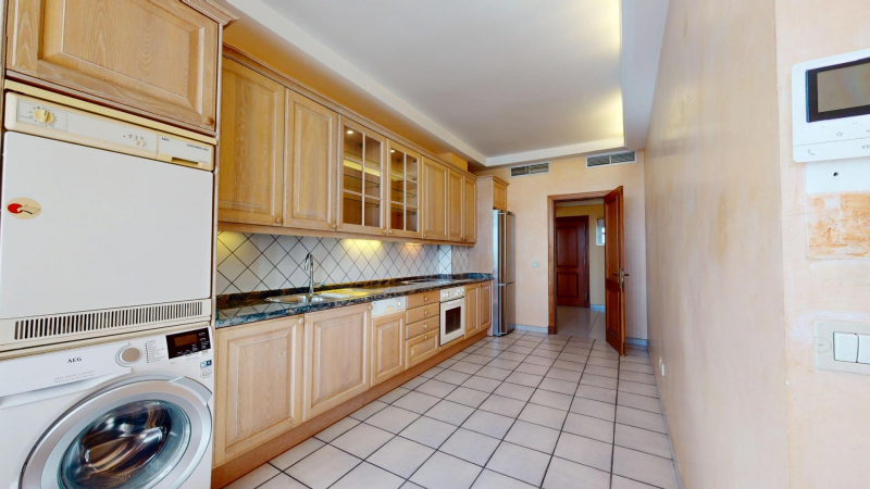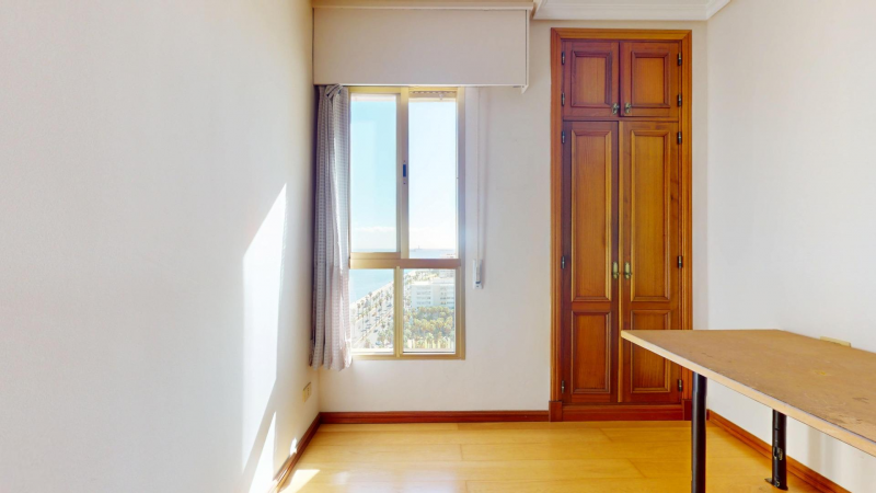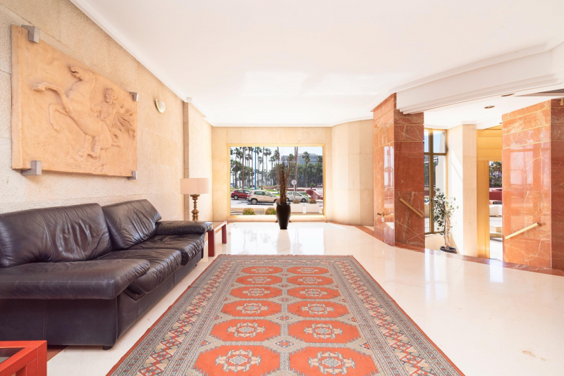 On the 15th floor of the iconic Granca Building, directly facing the Fuente Luminosa and located in the heart of the Arenales district, you will find this bright exterior residence offering spectacular 180° views and a south-facing orientation. The property boasts an excellent layout with three exterior bedrooms: the main bedroom is double-sized and features an en-suite bathroom; the other two bedrooms are also spacious and bright, both double rooms with built-in wardrobes and equipped with air conditioning and an extraction system, providing exceptional comfort.~~The home features a large living–dining room of approximately 25 m2 with a heat pump, and a 20 m2 renovated kitchen that incorporates the former utility area. The kitchen is fully exterior and connected directly to the glazed terrace, which enhances the feeling of space and natural light. It also includes a practical pantry and an adjoining 7.6 m2 storage room conveniently located near the elevators.~~Among its improvements are air conditioning in almost all rooms, oak floating flooring in the night area, aluminum and glass enclosures in both the kitchen and terrace, a renovated video intercom, a security entrance door, and a built-in safe.~~The Granca Building offers high-quality services that make it one of the most desirable properties in the city: 24-hour concierge and video surveillance, an elegant main lobby, a fully equipped communal gym, a social lounge, a reception storage room, an administrative office, a large interior patio, four renovated elevators plus a service lift, and an emergency generator ensuring the operation of common areas in case of a power outage.~~There is also the possibility of purchasing a large parking space on the upper garage level, close to the storage room and elevators—ideal for large vehicles and very easy to maneuver.~~An exceptional opportunity to enjoy a renovated, spacious, and very comfortable home in an iconic building, located in one of the best-connected and most serviced areas of Las Palmas de Gran Canaria.