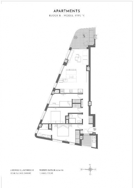 Exclusive Model N apartment, located on the 8th floor of the prestigious Amara Maris residential development in La Manga del Mar Menor.~~The property offers a total built area of 114.94 sqm, comprising three spacious bedrooms, two bathrooms, a bright open-plan living and dining area, and a covered terrace of 7.35 sqm, perfect for enjoying the Mediterranean climate. Its elevated position ensures excellent natural light, open views and a high level of privacy.~~The apartment is part of a modern residential complex featuring a communal swimming pool and includes a communal parking space. Designed to high-quality standards, the property combines comfort, functionality and contemporary design.~~Set in a prime coastal location between the Mediterranean Sea and the Mar Menor, this property represents an excellent opportunity as a permanent residence, holiday home or real estate investment.~~Scheduled completion: September 2026.