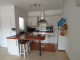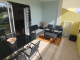The entrance leads directly into an open-plan living room and kitchen, a bright and inviting space. The modern kitchen, fully equipped (dishwasher, oven, microwave, fridge, induction hob), integrates seamlessly with the living area, creating the perfect space to share special moments with family and friends. Natural light fills the space, making every day more enjoyable and the atmosphere relaxed and comfortable.