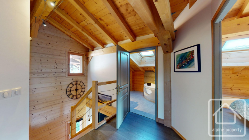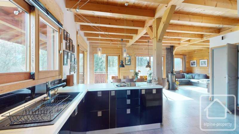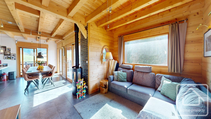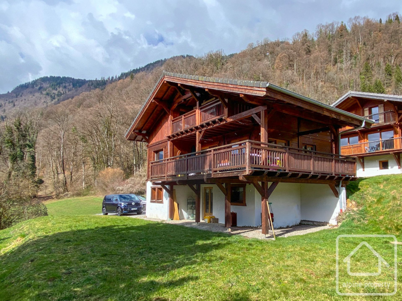 This light-filled family chalet, officially in the commune of Taninges, is situated on a sunny south-facing slope near Verchaix and just minutes from Samoëns and Morillon. It offers easy access to the Grand Massif ski domain, ideal for biking, riverside strolls and relaxed alpine living. Geneva is approximately 65 km away, making this an accessible second home or full-time family base.
