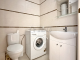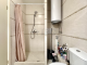 Bathroom with shower, toilet, boiler, and washing machine