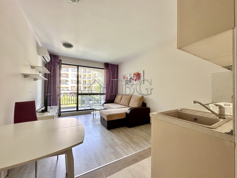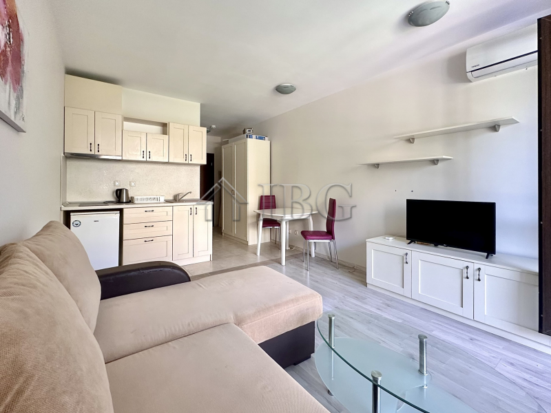 We are pleased to offer this spacious, fully furnished studio apartment located on the 2nd floor in a modern residential complex in Sunny Beach, just 800 meters from the sea. The complex has Act 16 since 2013 and is suitable for year-round living.