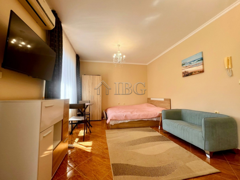 IBG Real Estates is pleased to offer this studio, located on the 4th floor in complex Helios. The complex is only 150 meters from the beach in Sveti Vlas and impresses with its architecture. It covers an area of 10 350 sq.m. and it consists of 5 blocks, each with lift. On the territory of the complex there is a swimming pool for adults and children, reception, restaurant, elevators, children playground, parking, year-round security and maintenance.