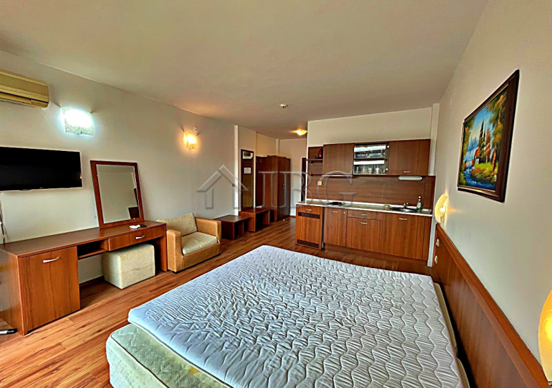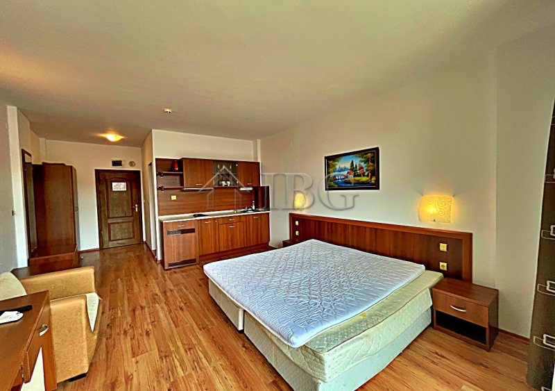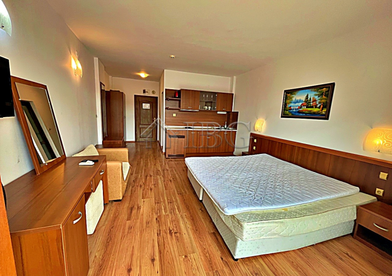 IBG Real Estates offers for sale this fully furnished studio with a beautiful pool view, located on the 4th floor (with elevator) in Complex Grenada, Sunny Beach.The complex is ideally located – very close to the sea and within walking distance to the historical town of Nessebar. The surrounding area offers excellent infrastructure with shops, restaurants, currency exchanges, pharmacies, and a year-round supermarket.