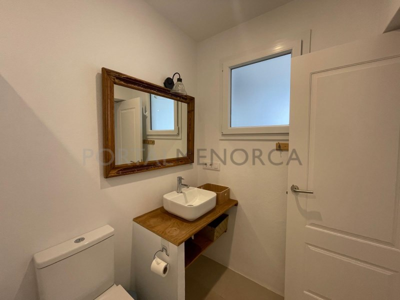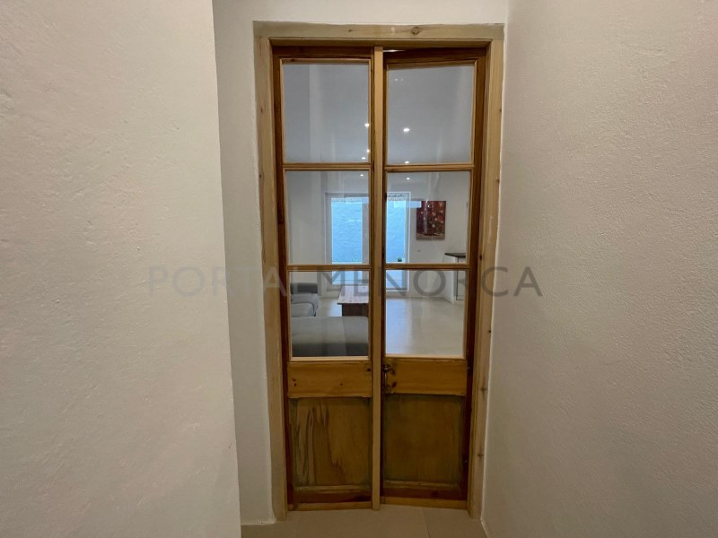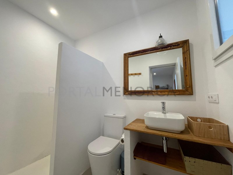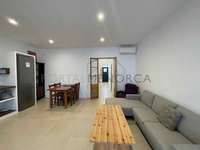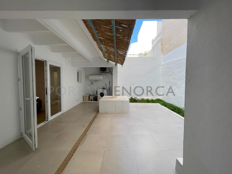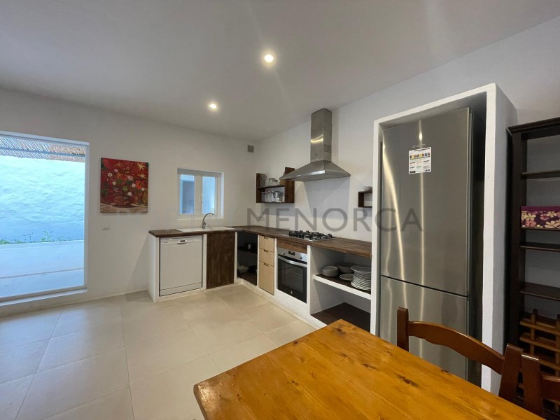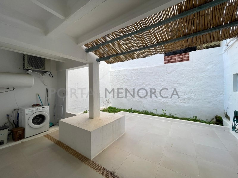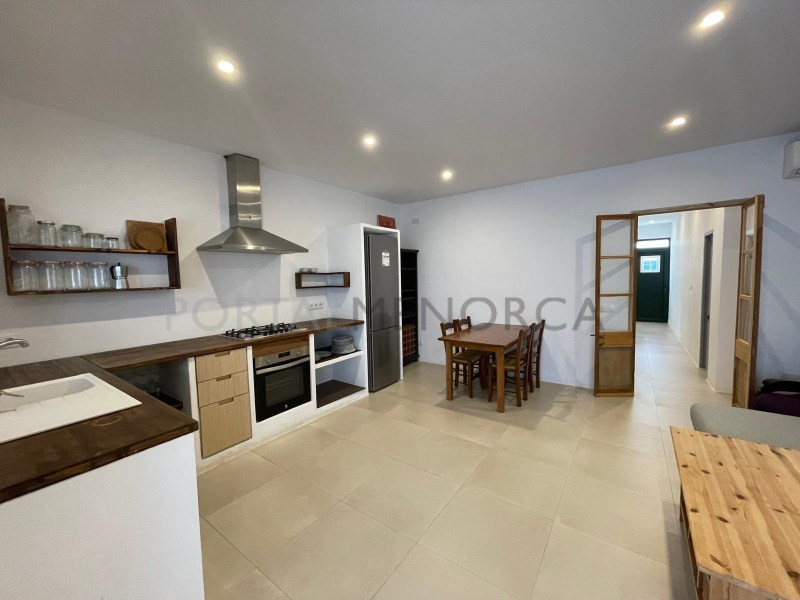 Ground-floor house with independent access and a spacious patio in Es Castell. It features 2 double bedrooms (one interior) and 1 bathroom. Open-plan kitchen, dining and living area. Auxiliary room in the patio. Completely renovated, with improved accessibility, new installations and PVC exterior carpentry with double glazing. A/C in the living room. A comfortable, practical and charming home waiting for you!