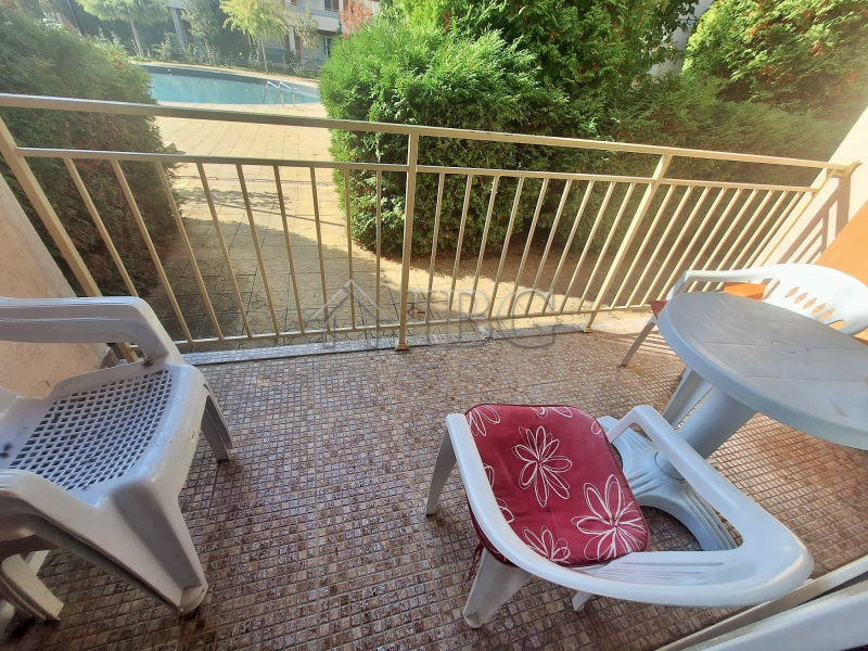 For sale is a studio, located on the ground floor in the well-maintained complex Nessebar Fort Club – right across from the Aqua Park and only a 10-minute walk from the beach and the centre of the resort. The complex is like a resort on its own, offering 6 swimming pools, a seasonal restaurant, combined sport field, mini golf, year round reception and live security, seasonal supermarket. There are 3 big supermarkets nearby – LIDL, MM and Mladost.