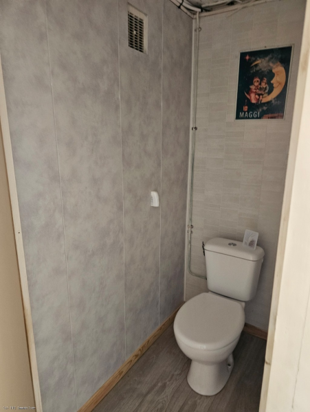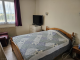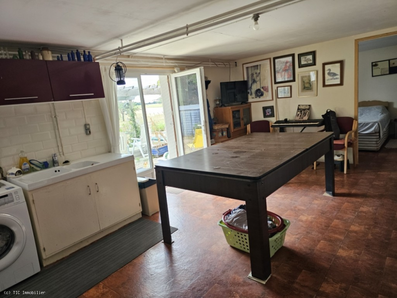 Summer studio with two windows and a French door, WC, sink, bedroom (26 m2), pellet stove.